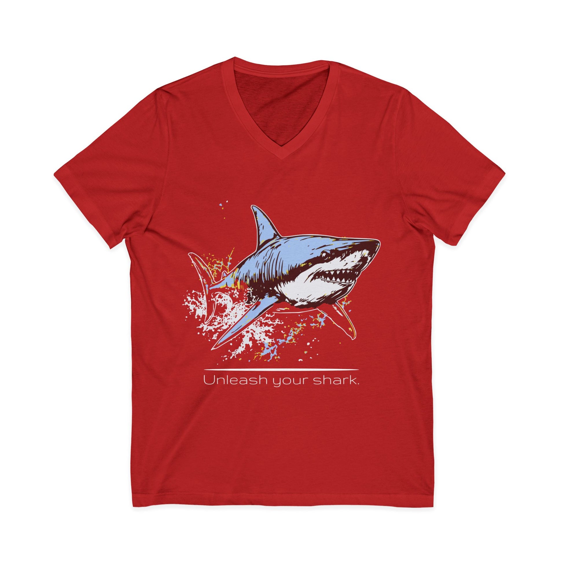 Great White Shark Ultimate "Unleash your shark" V-Neck Graphic Unisex Jersey Tee