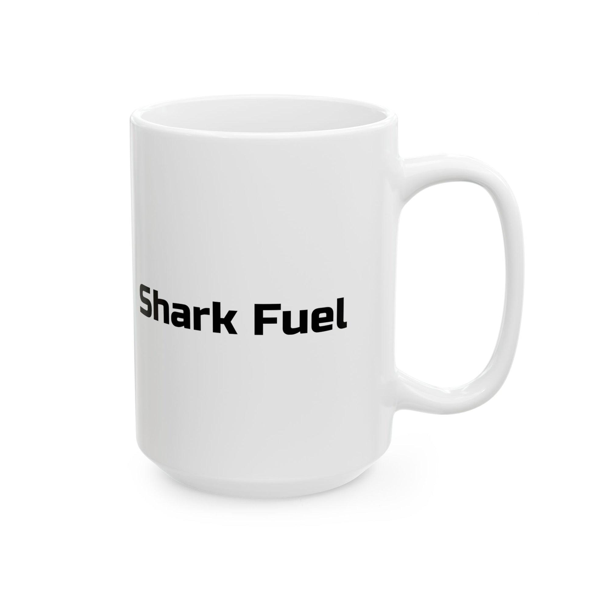 - Lively shark graphic with bold "Shark Fuel" wordmark