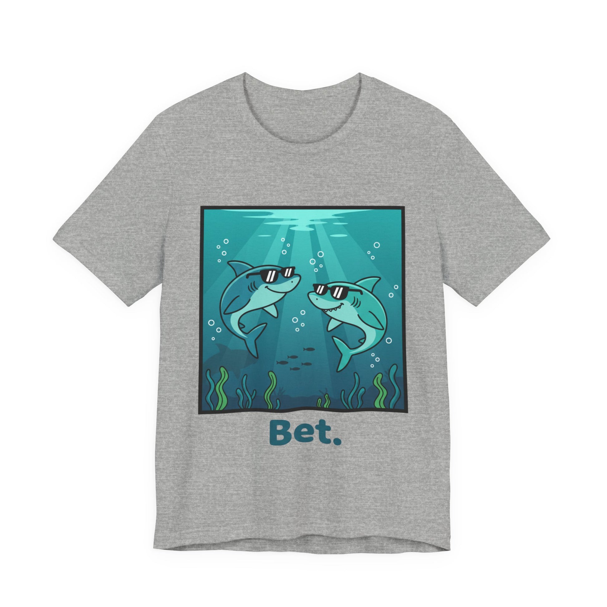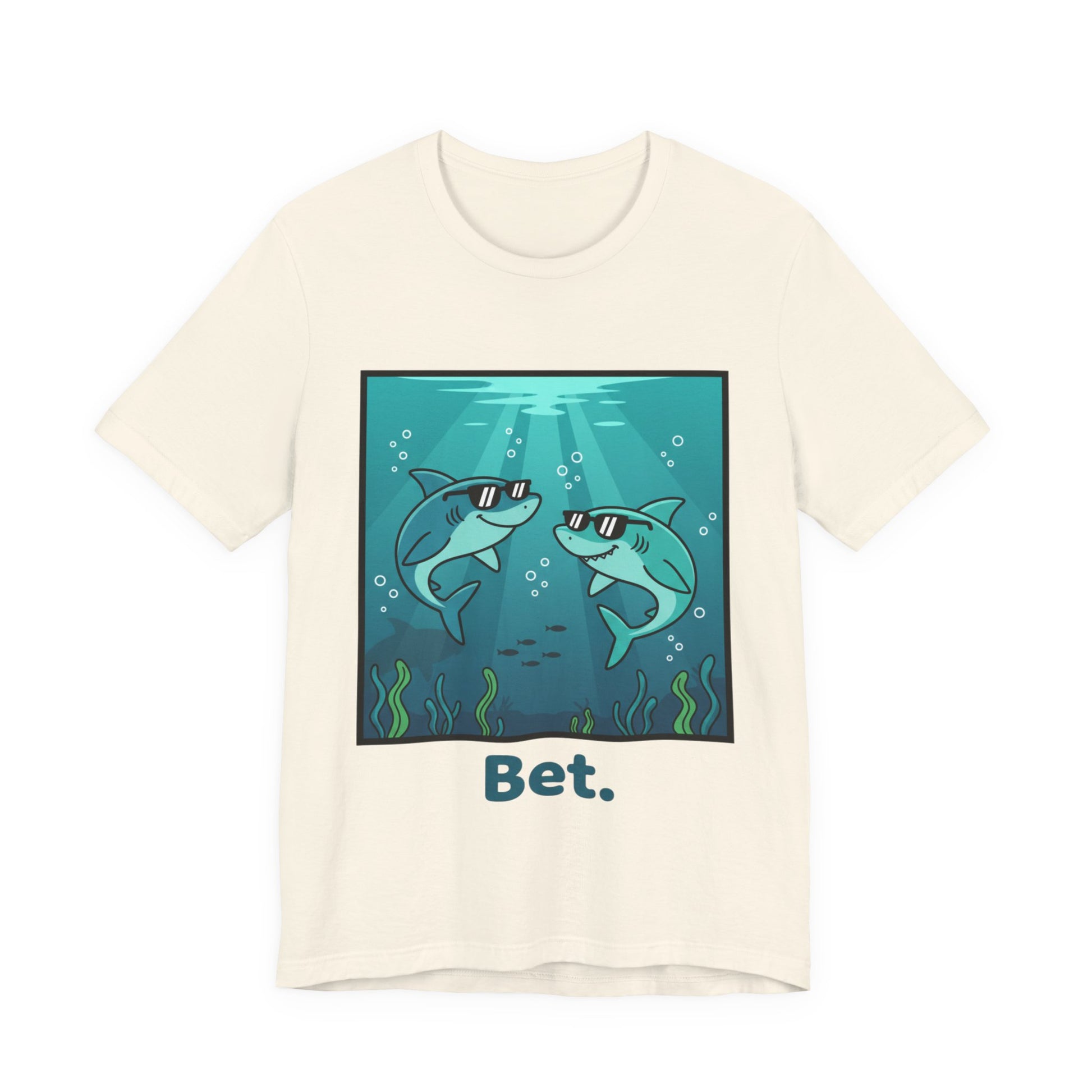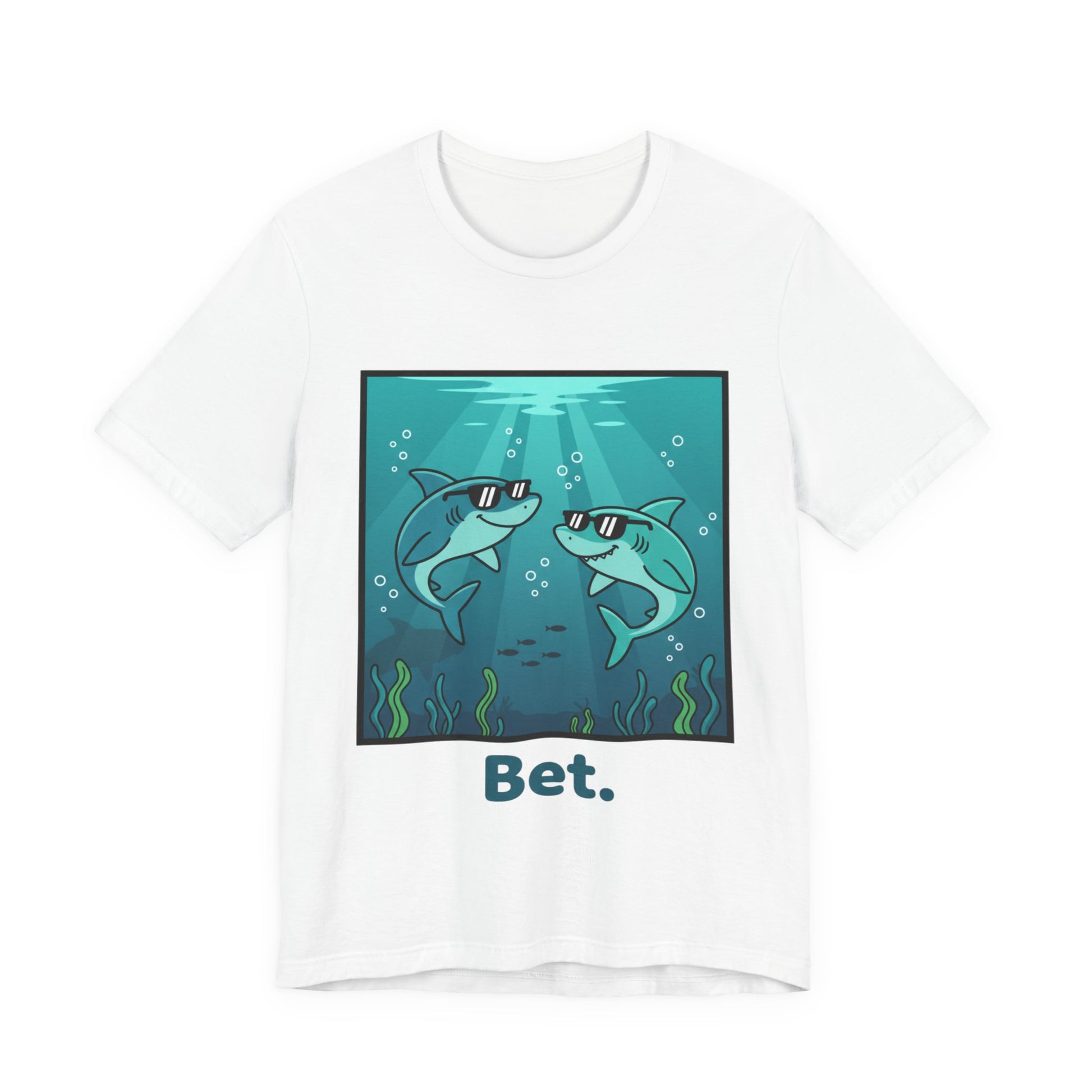 When two sharks in shades share a cool, low-key moment beneath the sea, it's the ultimate agreement—no words needed, just mutual understanding and good vibes. This tee captures that energy with a playful design that says "I'm down," "sounds good," and "let's do this" all at once. It's for people who know that the best plans are the ones you don't overthink—you just say bet and go