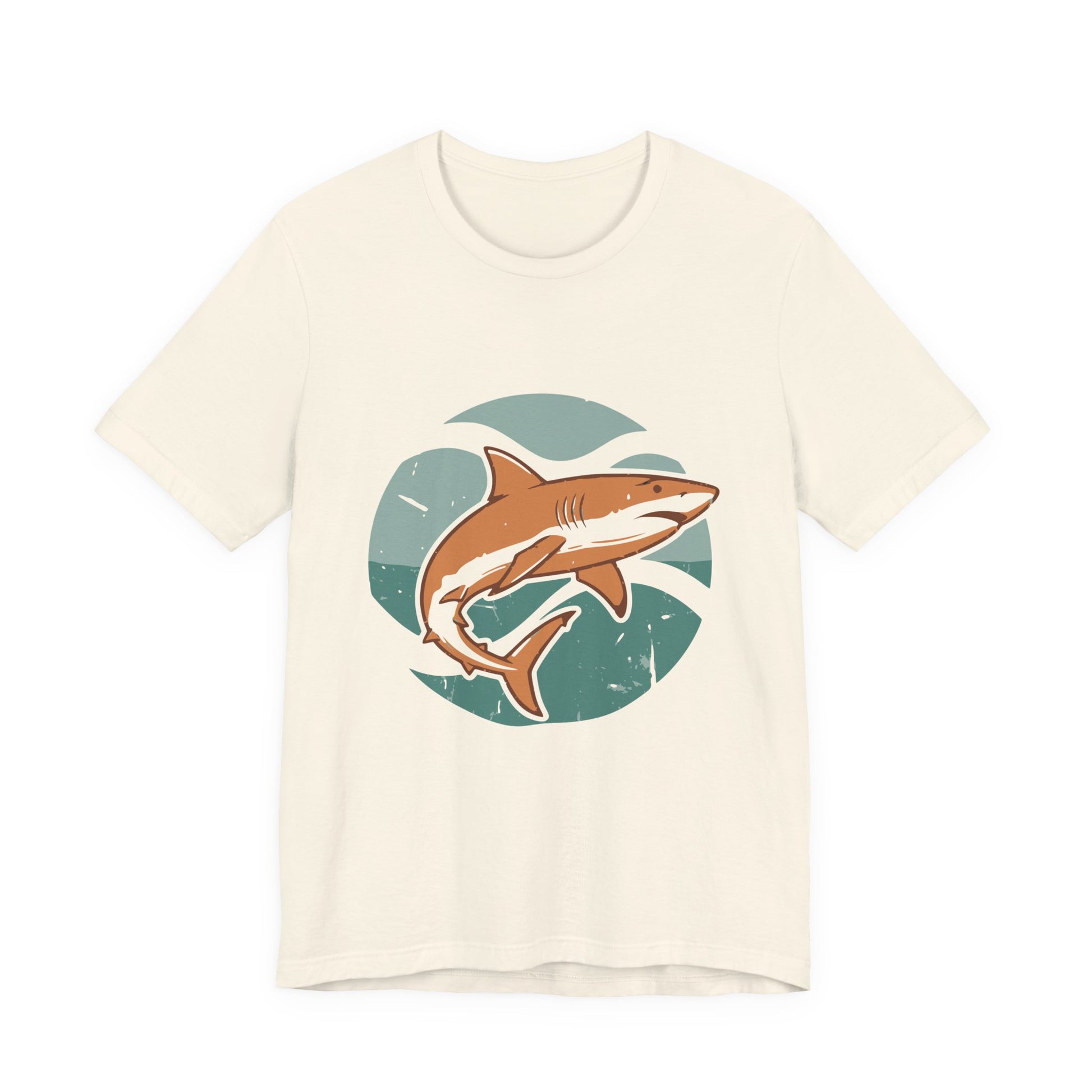 - Bold, vivid graphic – High-quality retro shark imagery that makes a statement